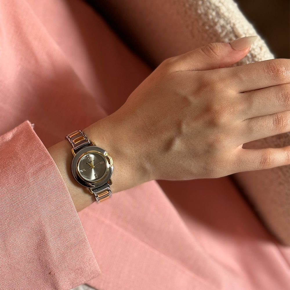 ساعة نسائية بتصميم عصري و أنيق لكل أنثى محبة للموضة، ساعة نسائية بتفاصيل ساحرة وأخاذة، ساعة بسير ستانلس ستيل فاخره على شكل راقي و مينا مزين بخطوط رفيعة تعطيك منظر مذهل وبعقارب ذهبية و إطار بدوائر أنيقة، الساعة مجهزة بتجهيز رائع للاهداء وتعتبر من أفضل الهدايا لتقديمها لمن تحبين ولشخص عزيز على قلبك، مع أختيارك لهذه الساعة ستكون طلتك مثالية و ساحرة، ساعة سترافقك في امسياتك السعيدة هذه الساعة ستكون بلا شك إضافة أنيقة و فريدة لمجموعة مجوهراتك، لا تتردين في شرائها لأنها ستصبح واحدة من أحب الساعات إلى قلبك و التي ستعطيك مظهرًا راقي.
